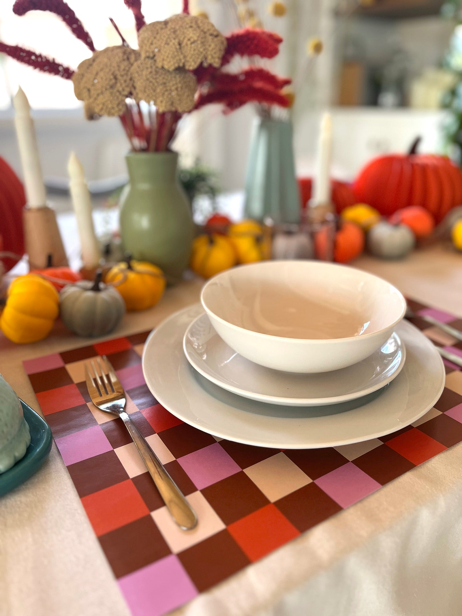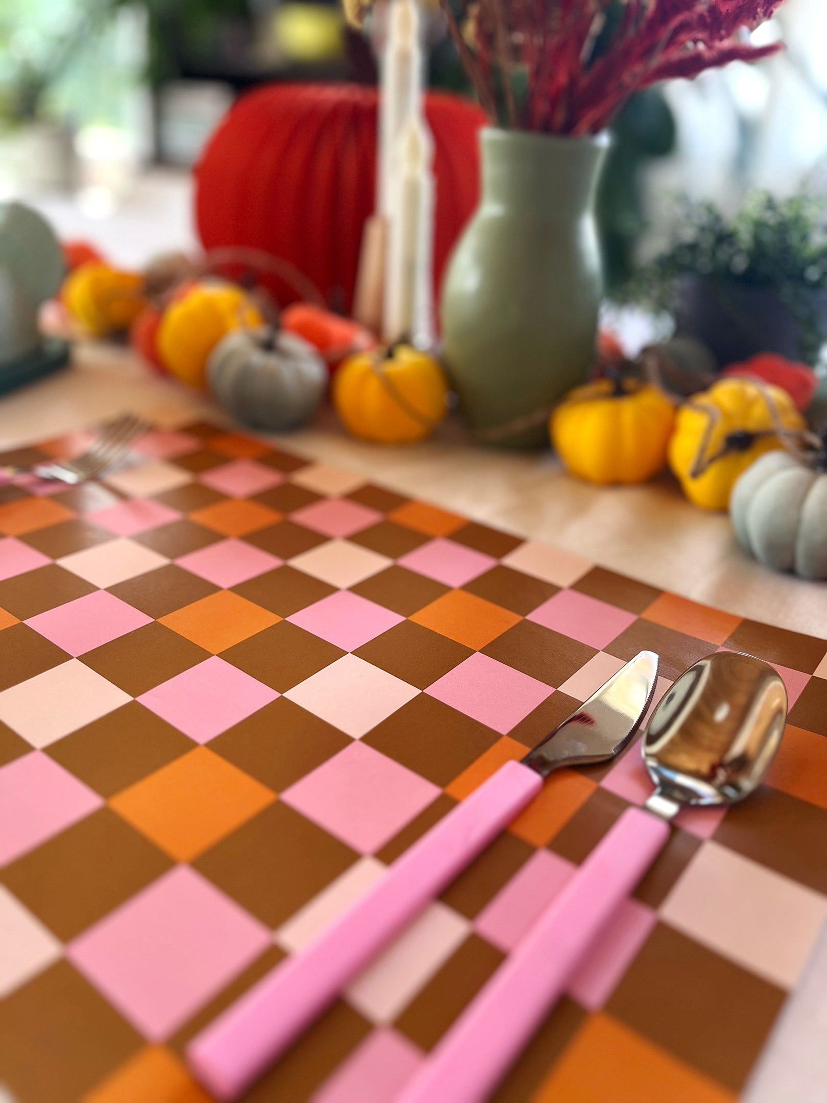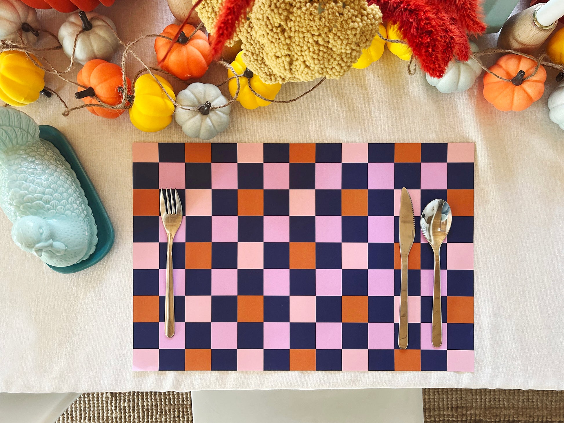 Add a splash of seasonal charm to your table with our Bright Autumn Checkered Paper Placemats! Featuring a cozy, colorful blend of fall-inspired hues—think rich oranges, warm reds, golden yellows, and deep browns—these placemats bring the perfect touch of harvest style to any meal.