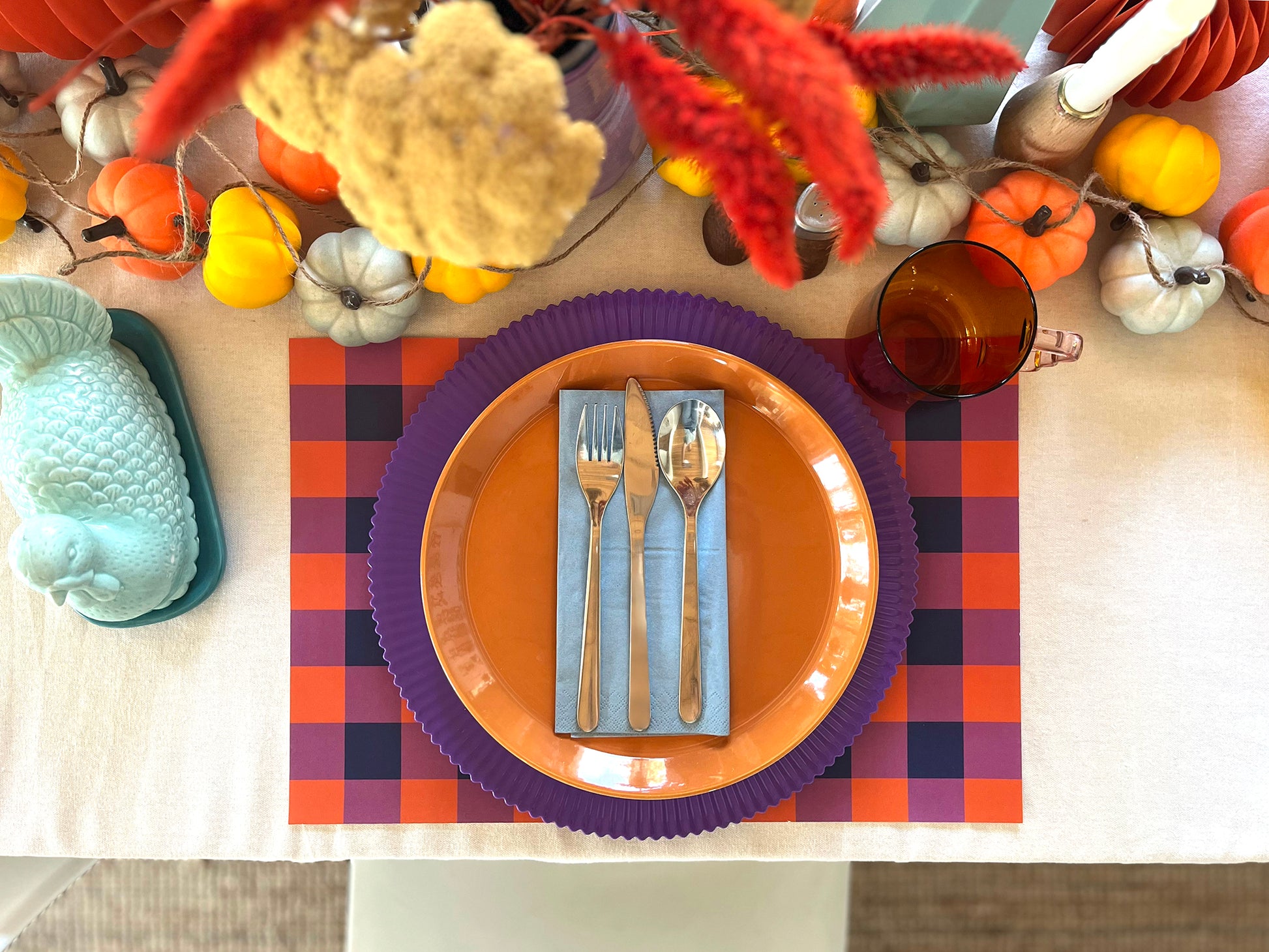 Bring the warmth and color of fall to your table with our Bright Autumn Plaid Paper Placemats! Featuring a vibrant plaid pattern in rich seasonal shades—like pumpkin orange, sunset pink, earthy bronze, and rustic brown —these placemats instantly add a cozy, festive feel to any setting.