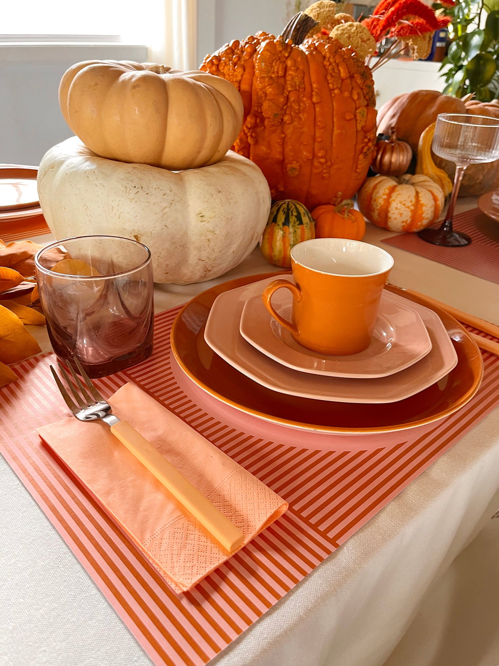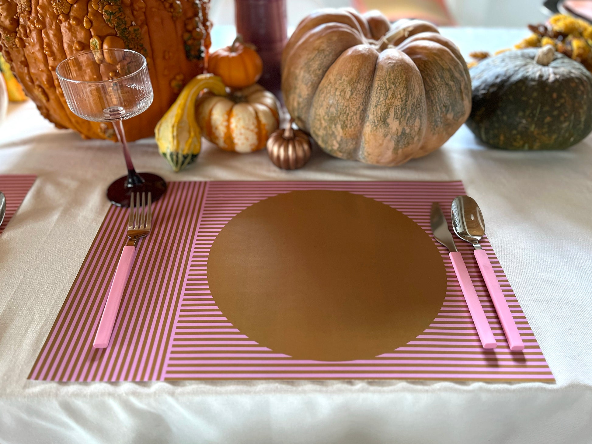Set the table in seasonal style with our Autumn Striped Paper Placemats—a perfect blend of form and function! Featuring warm, autumn-inspired stripes in shades of warm gold, sunset pink, autumn orange, and rustic brown, these placemats bring cozy fall vibes to any meal.