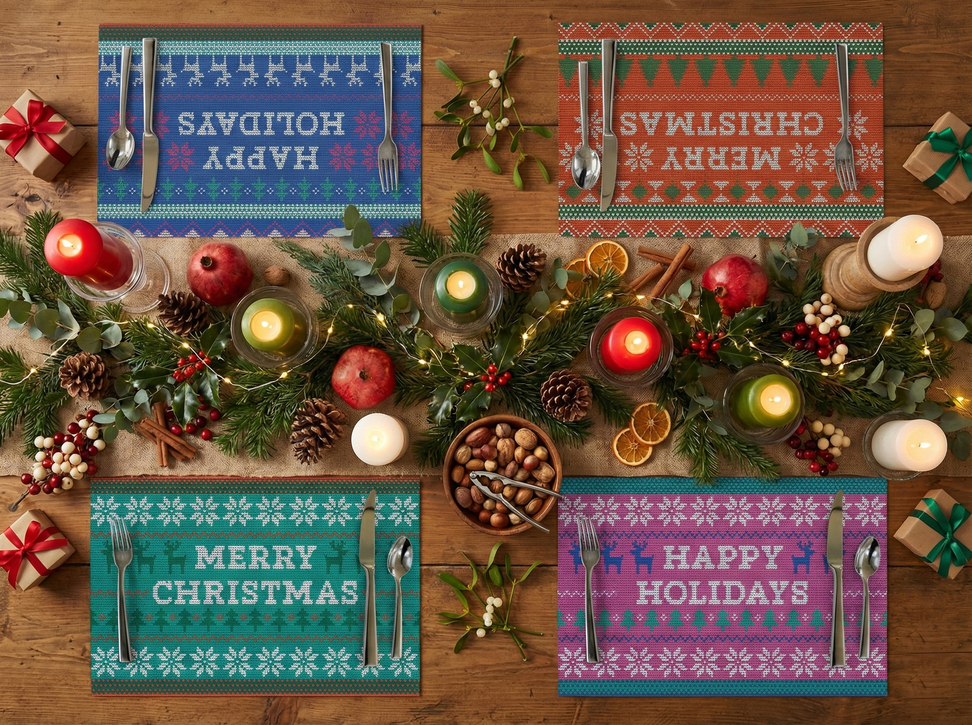 Bring cozy holiday cheer to your table with this bright Christmas sweater–pattern paper placemat from ColorStudyCo. Featuring bold, playful motifs inspired by classic festive knitwear, this vibrant design adds warmth, whimsy, and color to any seasonal gathering. Printed on durable, disposable paper, it’s perfect for Christmas dinners, cookie parties, kids’ tables, and festive hosting. A fun, nostalgic touch that instantly makes your holiday table feel merry and full of joy.