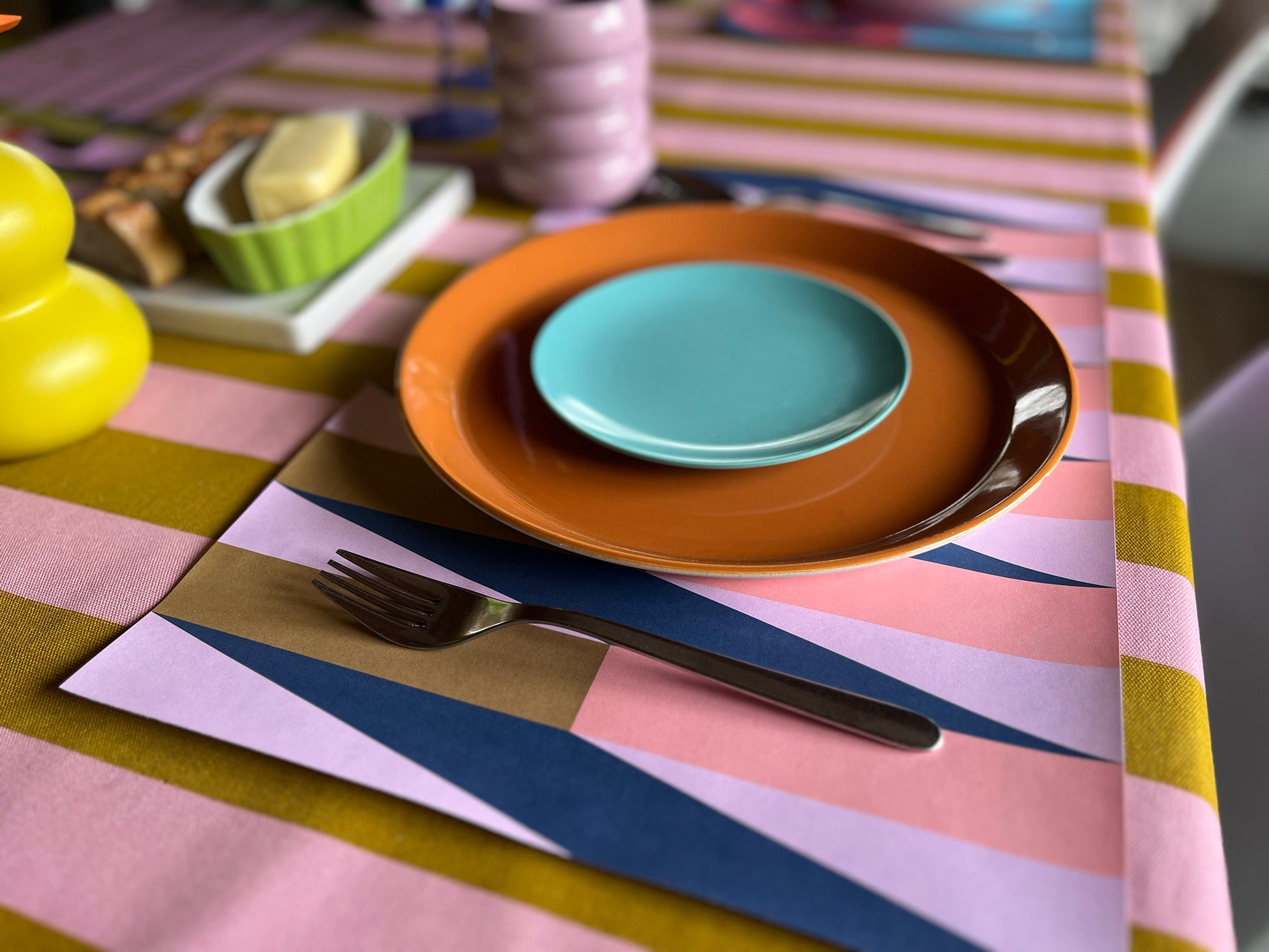 Add a pop of fun to your table with our modern diagonal stipe paper placemats—bold, bright, and full of personality. Featuring eye-catching colors and crisp lines, these designs bring an instant energy boost to any meal or celebration. Perfect for everyday vibes or party flair!