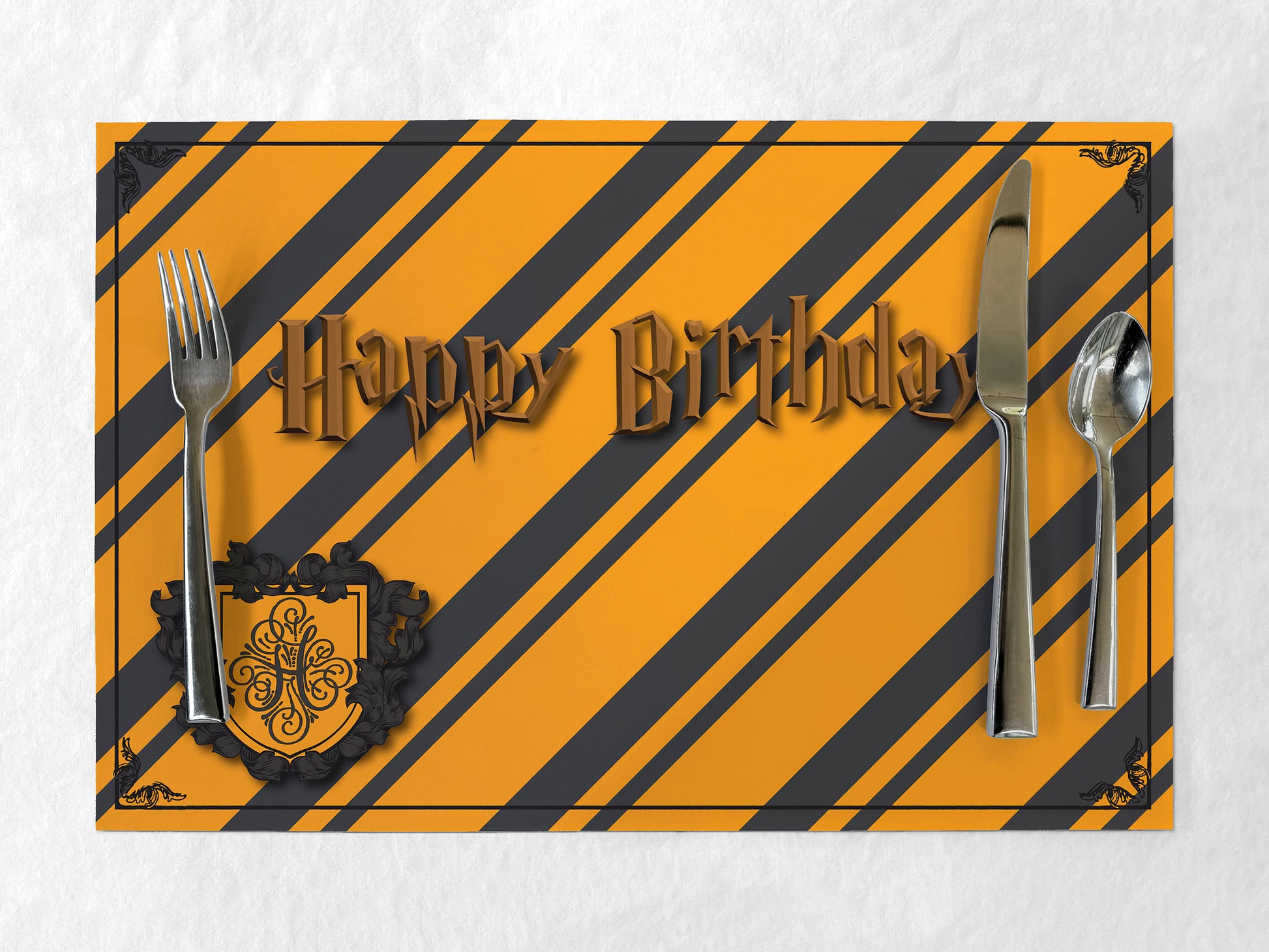 Show your house pride at your next birthday party with our customizable Hogwarts-inspired paper placemats! Featuring designs for all four houses—Gryffindor, Hufflepuff, Ravenclaw, and Slytherin—these recyclable and sustainable placemats make magical table décor for parties, feasts, and celebrations. Personalize them for a unique touch while enjoying an eco-friendly, easy-clean dining solution.