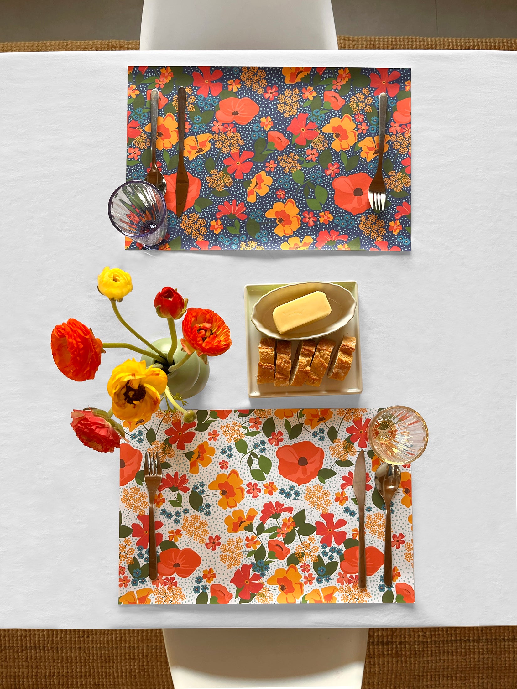 Bright florals make any table sophisticated and fun! These paper placemats are the perfect way to add a vibrant pop of color to your table to make it special. Anything but boring, these eye-catching designs work beautifully as standalone sets or can be mixed and matched for maximum color fun! Cleanup is a breeze—just recycle them when you're done!