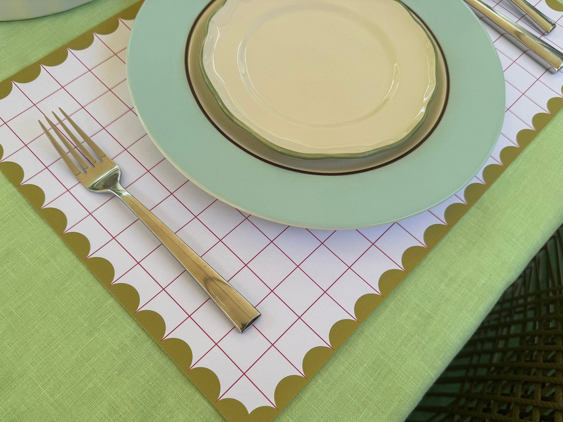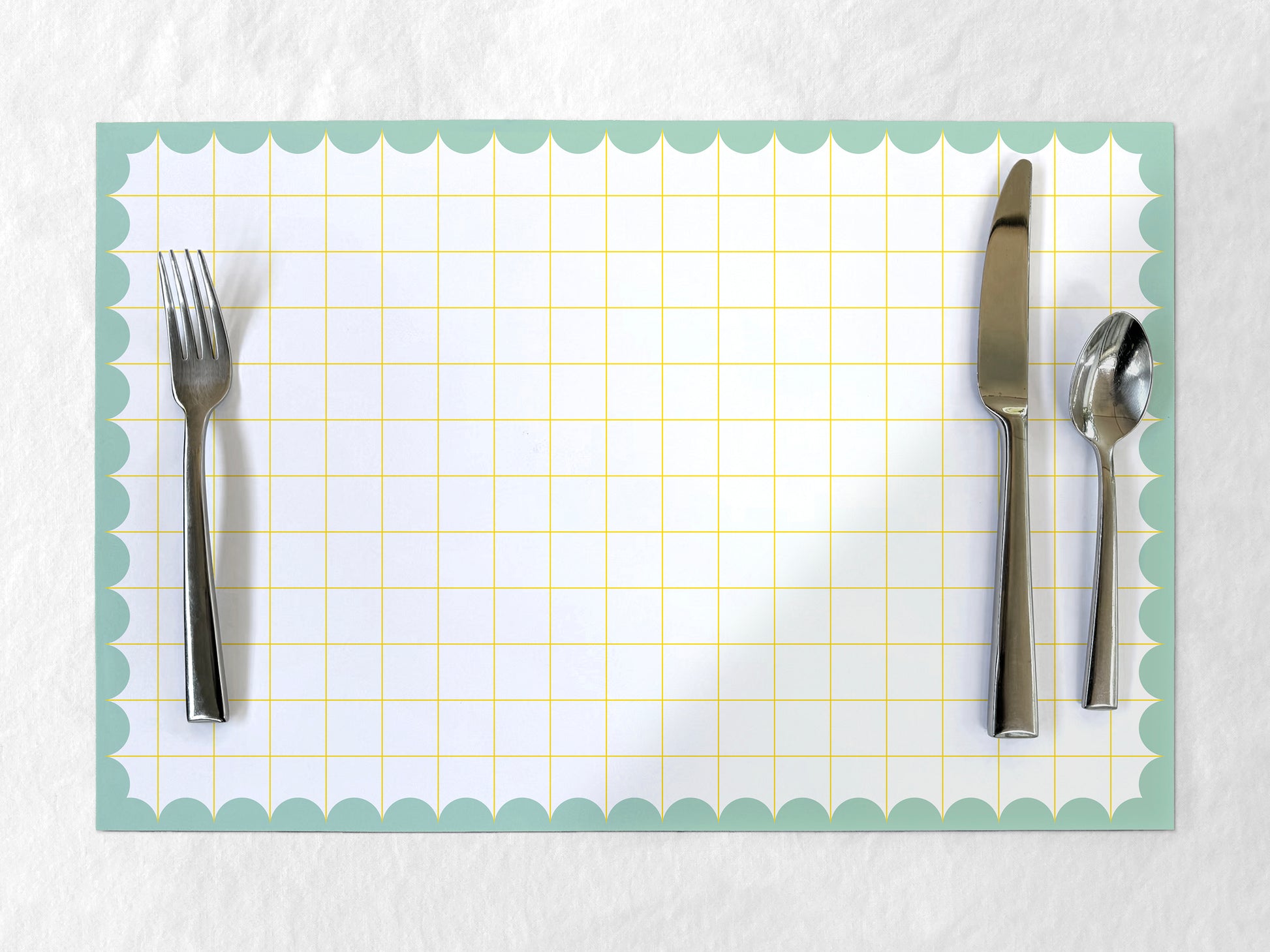 Meet the Scallop Grid Placemats—these colorful paper placemats feature a fun scalloped edge for an extra touch of charm. Disposable for easy cleanup and recyclable for guilt-free gatherings—your table’s new favorite accessory!
