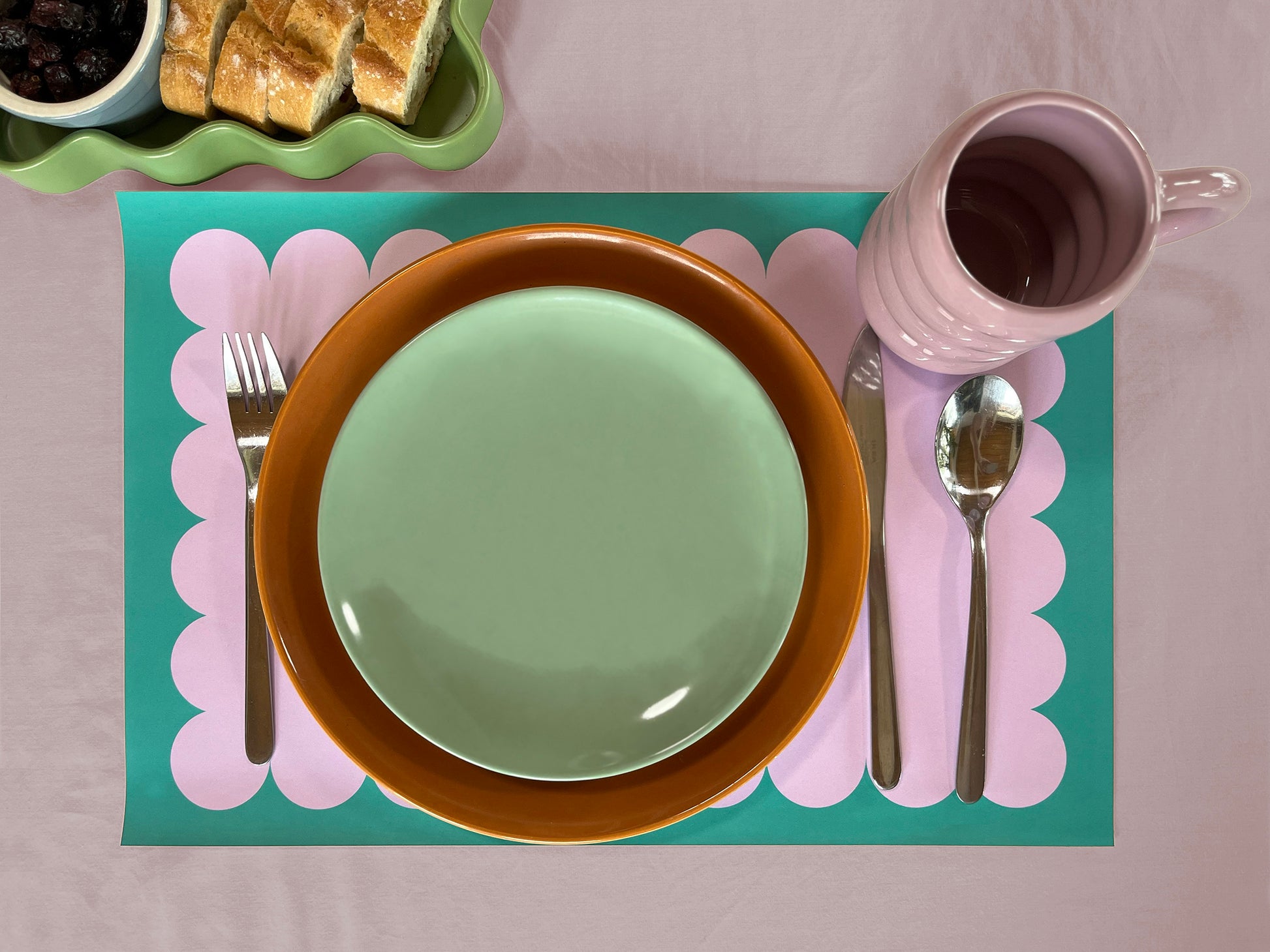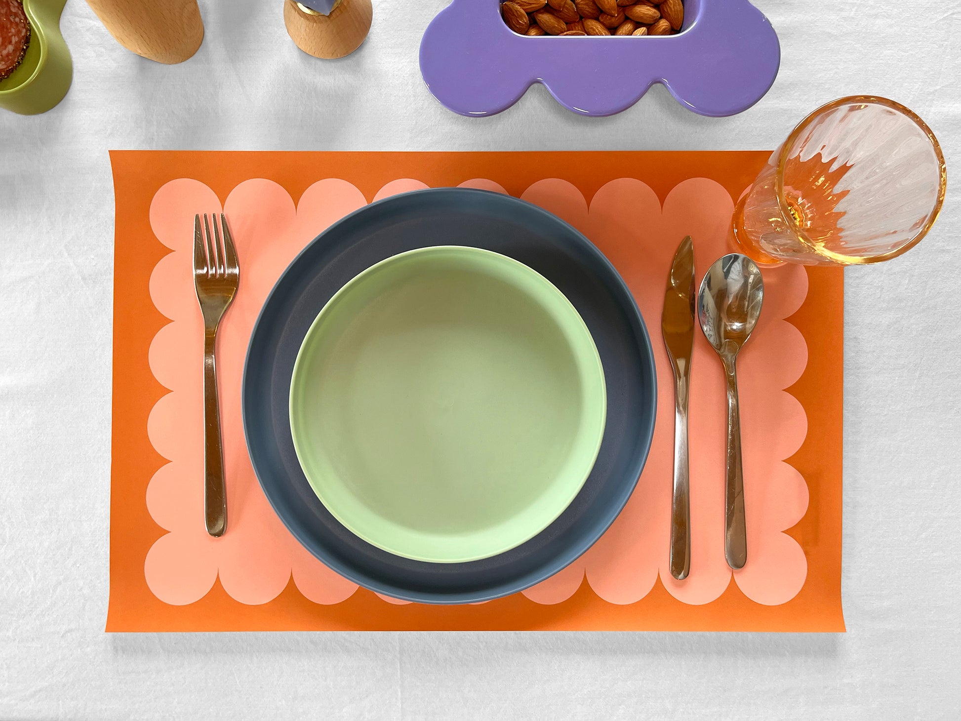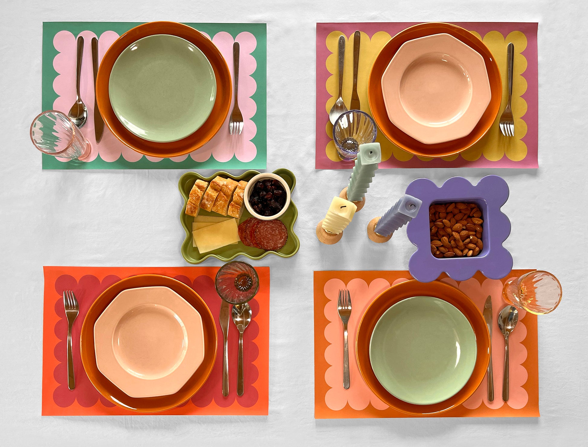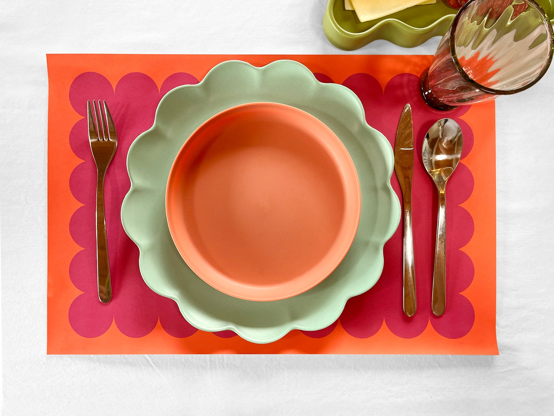 Scallops make any table sophisticated and fun! These recycled paper placemats are the perfect way to add a vibrant pop of color to your table to make it special. Anything but boring, these eye-catching designs work beautifully as standalone sets or can be mixed and matched for maximum color fun! Cleanup is a breeze—just recycle them when you're done!