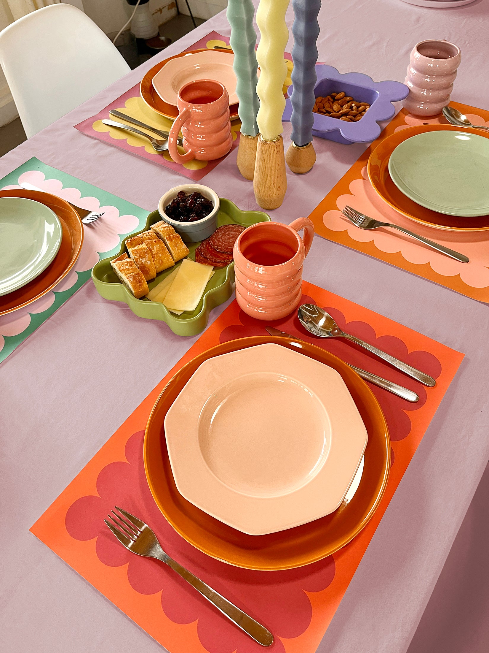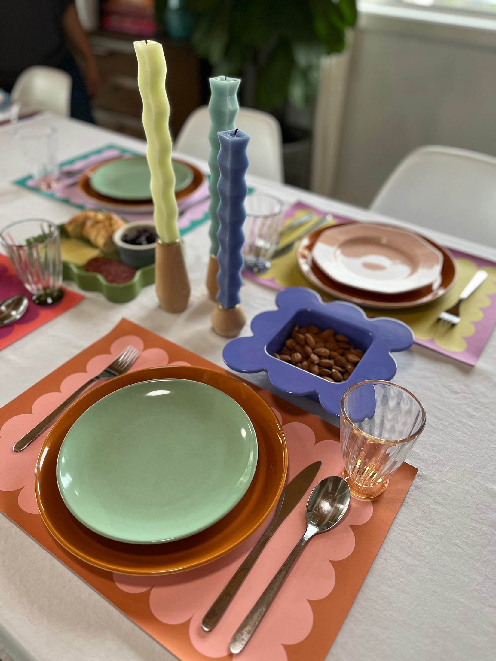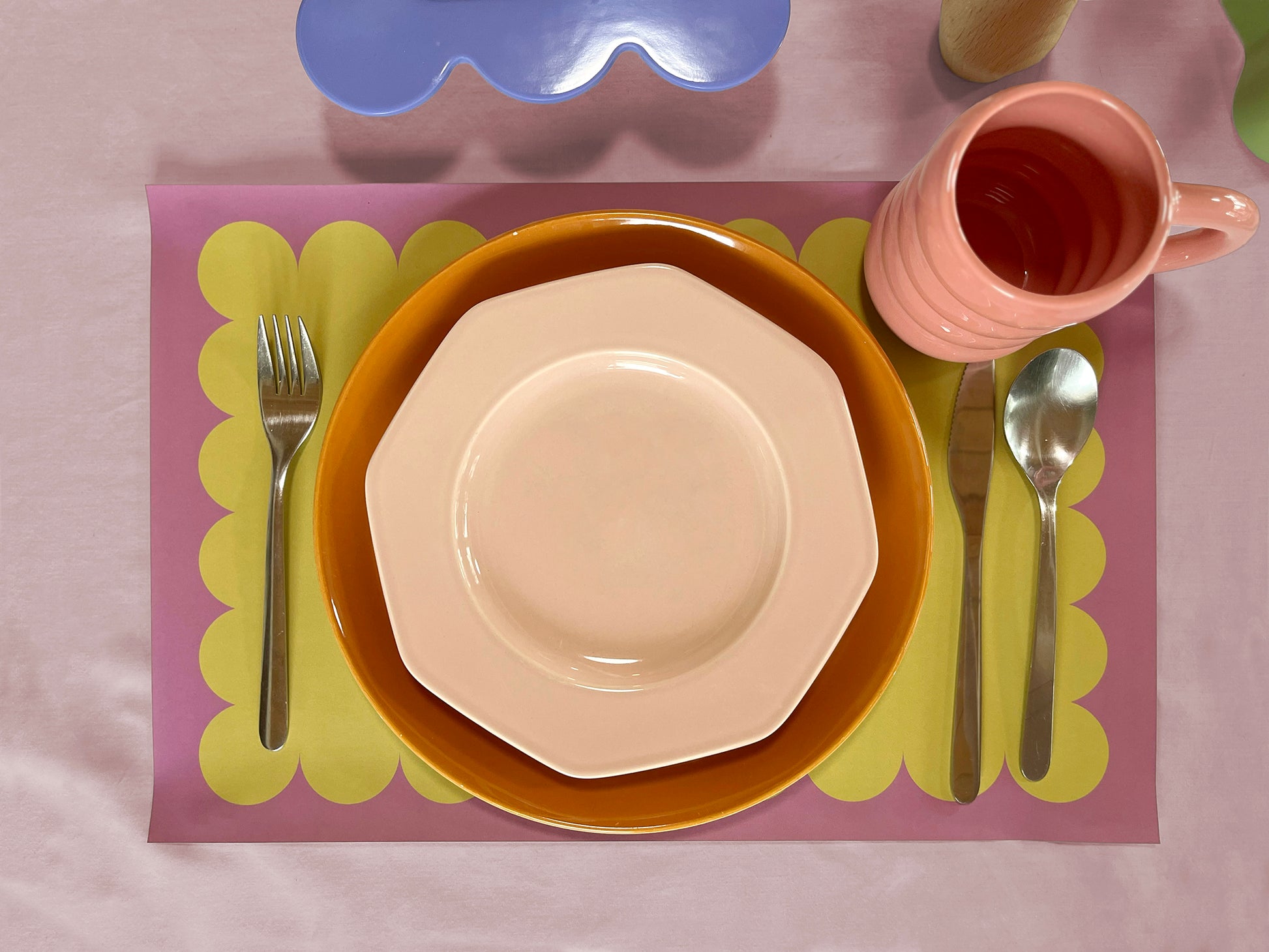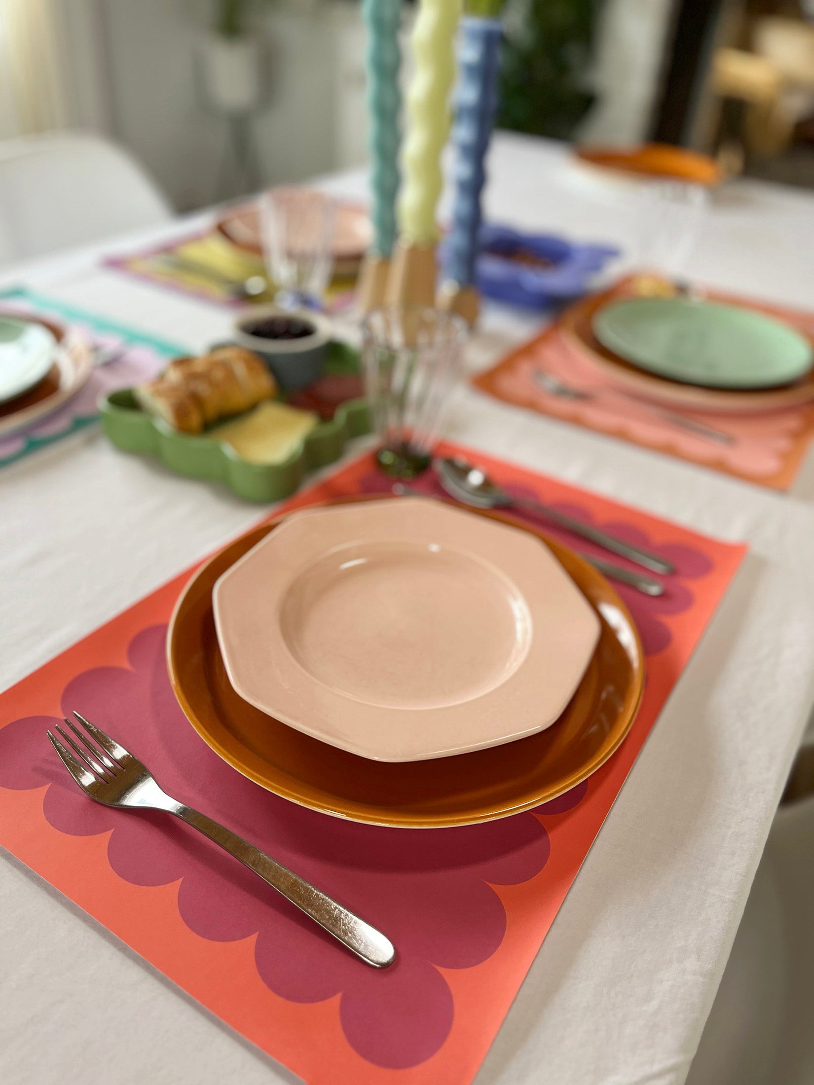 Scallops make any table sophisticated and fun! These recycled paper placemats are the perfect way to add a vibrant pop of color to your table to make it special. Anything but boring, these eye-catching designs work beautifully as standalone sets or can be mixed and matched for maximum color fun! Cleanup is a breeze—just recycle them when you're done!