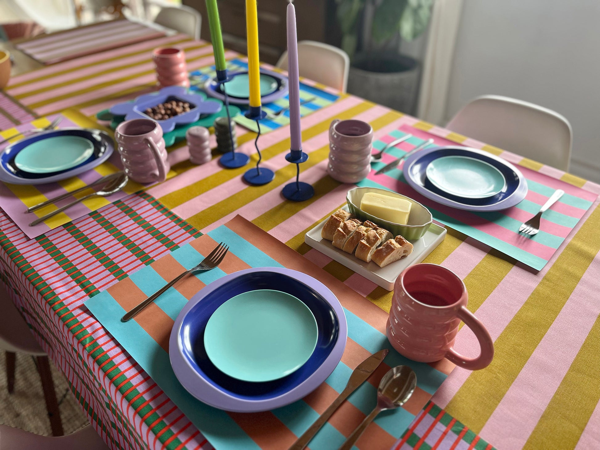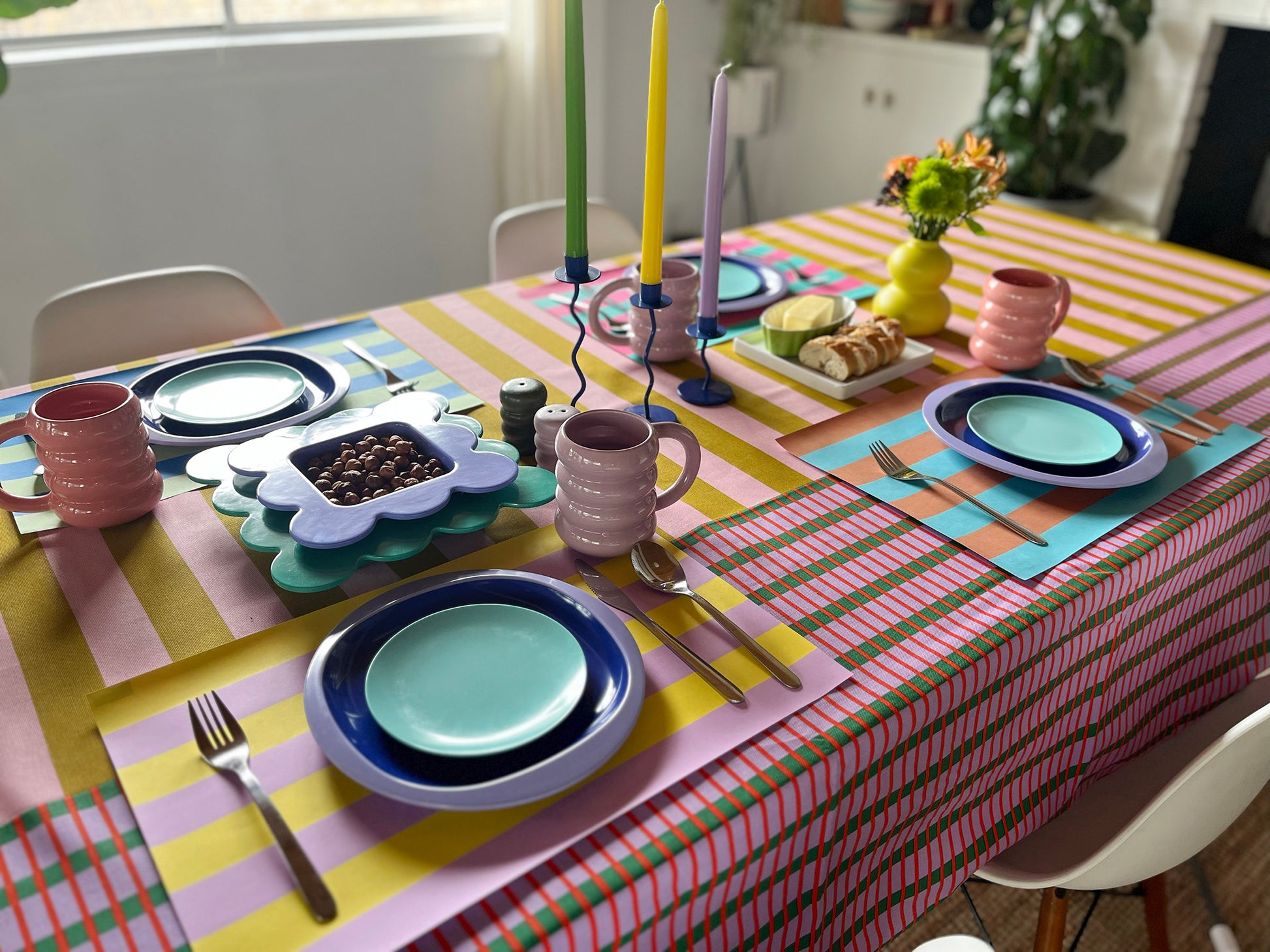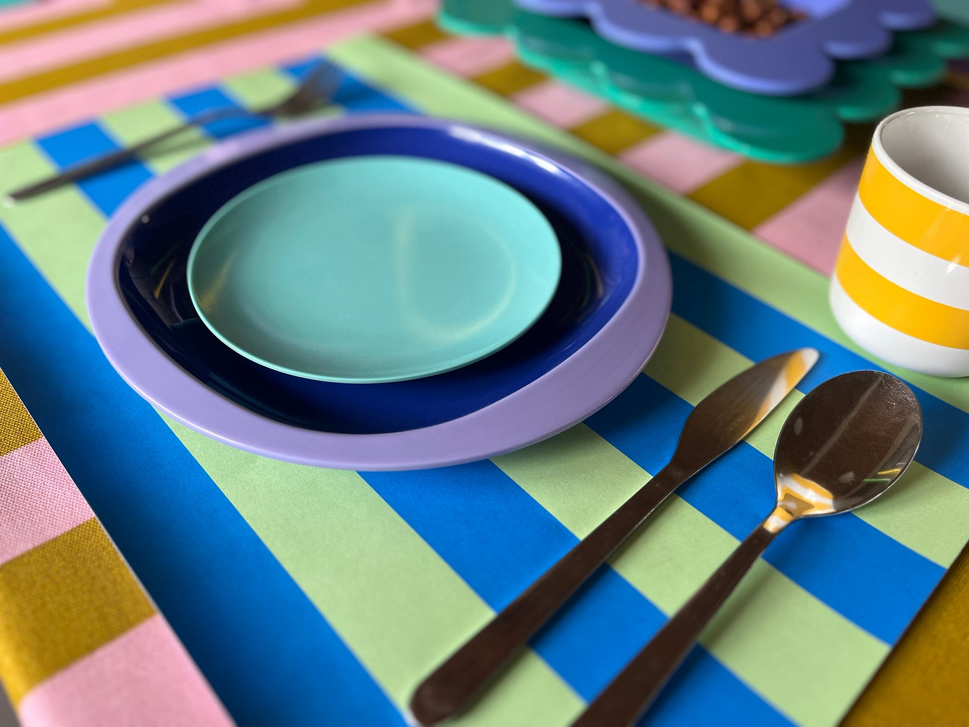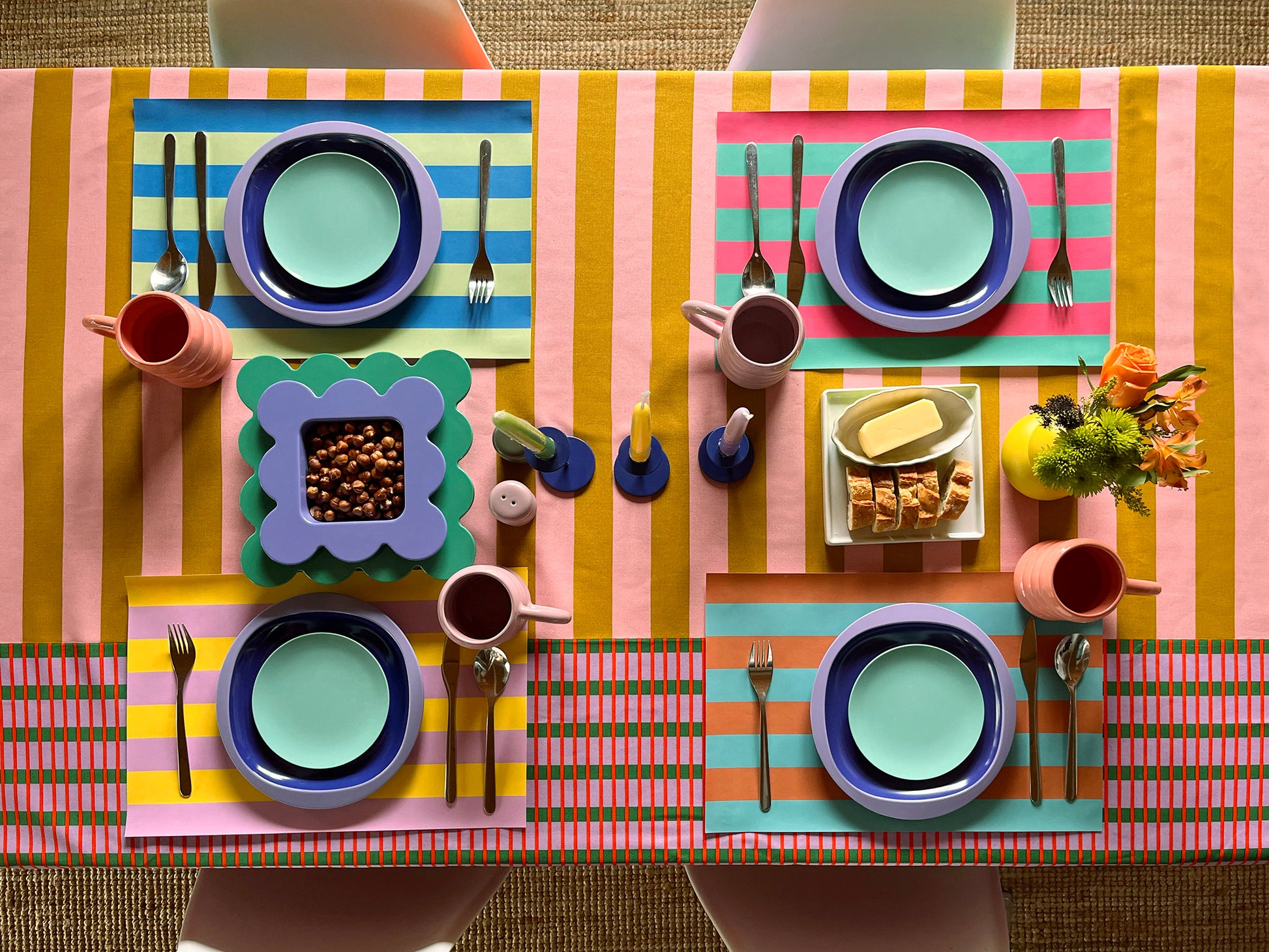 Bring modern design and color to your table with stripes! These recycled paper placemats are the perfect way to make your meal pop. Anything but boring, these eye-catching designs work beautifully as standalone sets or can be mixed and matched for maximum color fun! Cleanup is a breeze—just recycle them when you're done!
