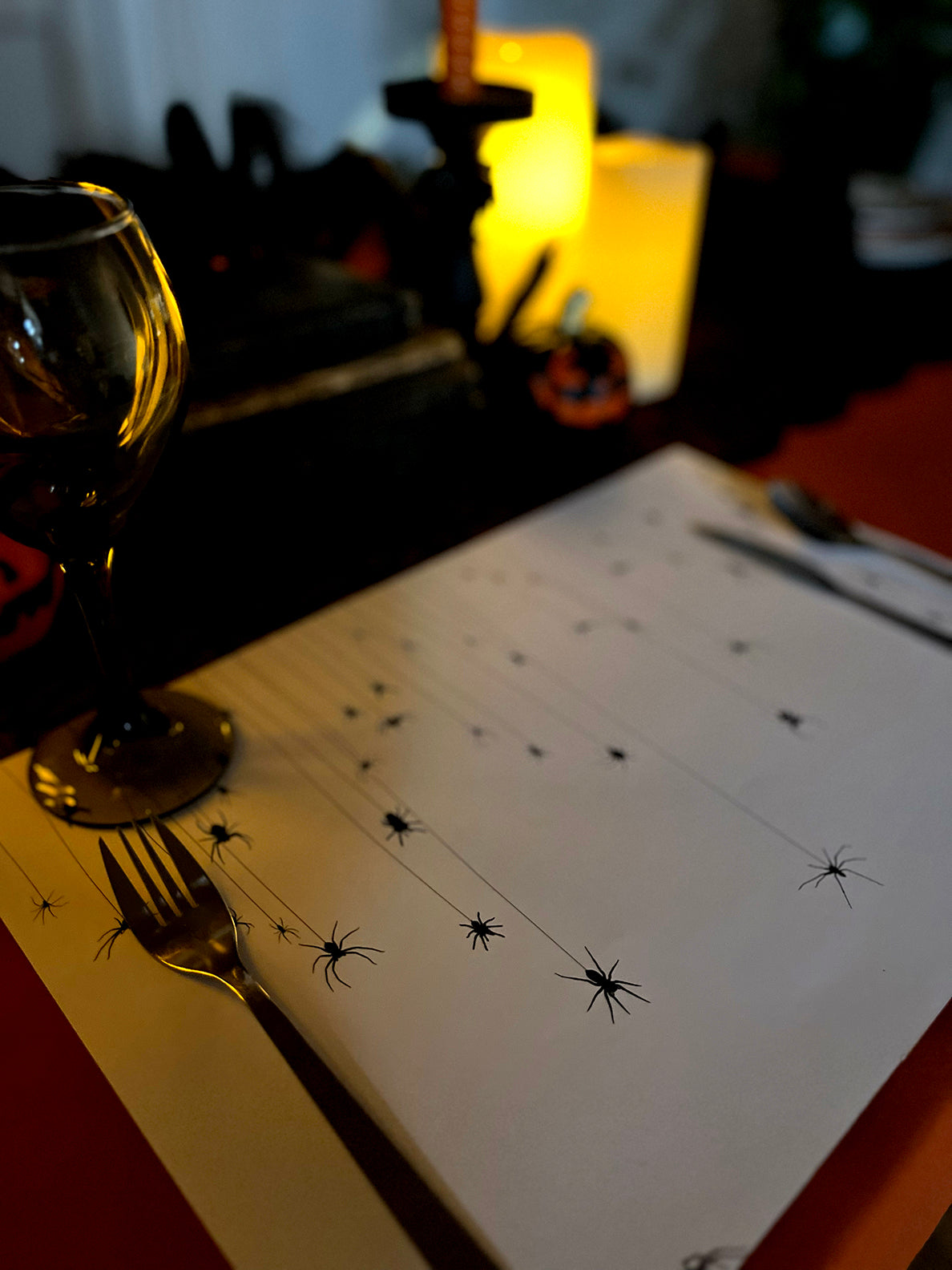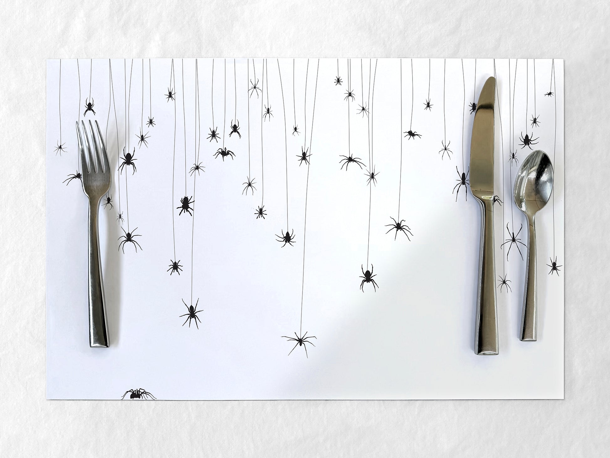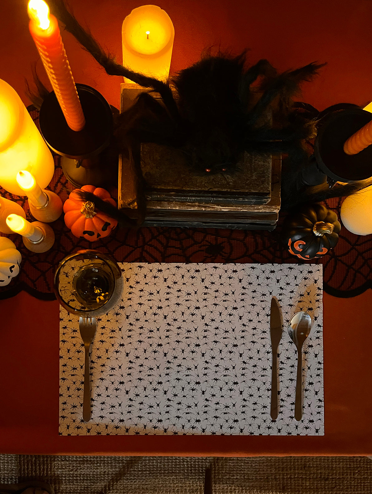 Spooky spider paper placemats! Featuring a fun, frightful design, these recyclable and sustainable placemats make the perfect addition to your Halloween table. Ideal for parties, haunted gatherings, and festive celebrations, they combine eco-friendly style with easy cleanup—so you can celebrate sustainably without sacrificing the spooky fun.