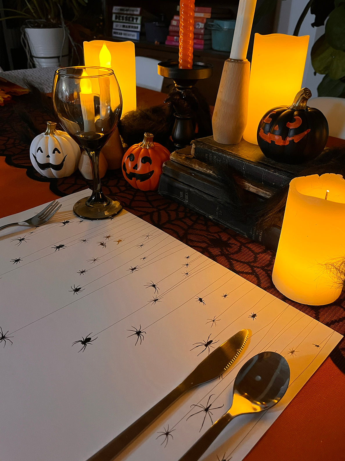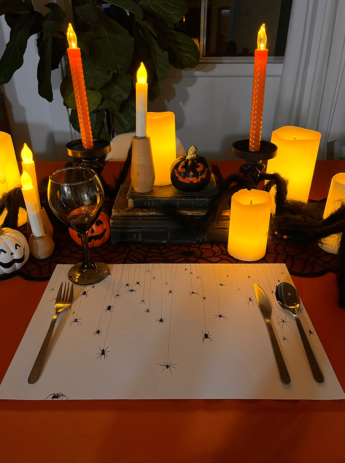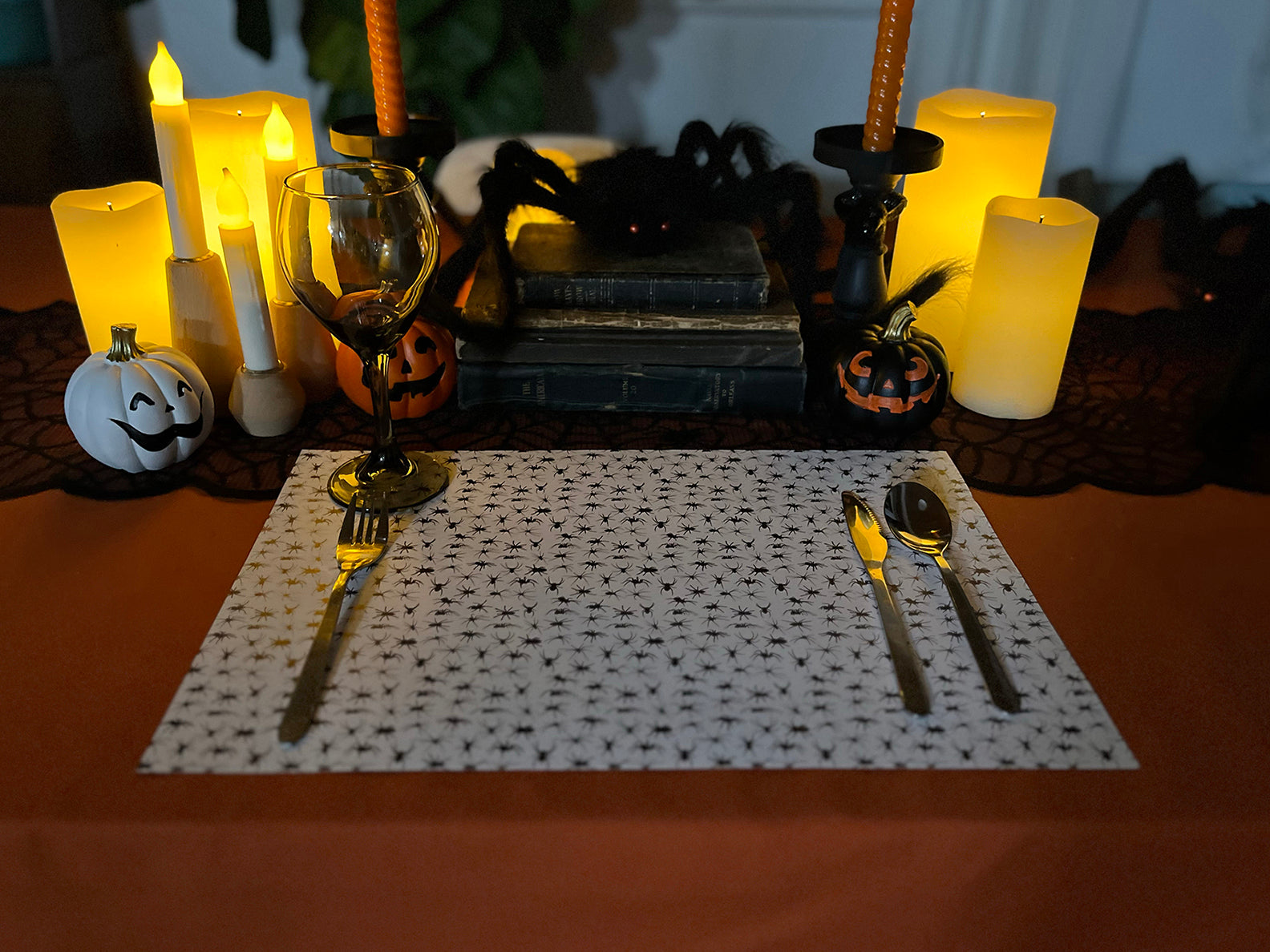 Spooky spider paper placemats! Featuring a fun, frightful design, these recyclable and sustainable placemats make the perfect addition to your Halloween table. Ideal for parties, haunted gatherings, and festive celebrations, they combine eco-friendly style with easy cleanup—so you can celebrate sustainably without sacrificing the spooky fun.