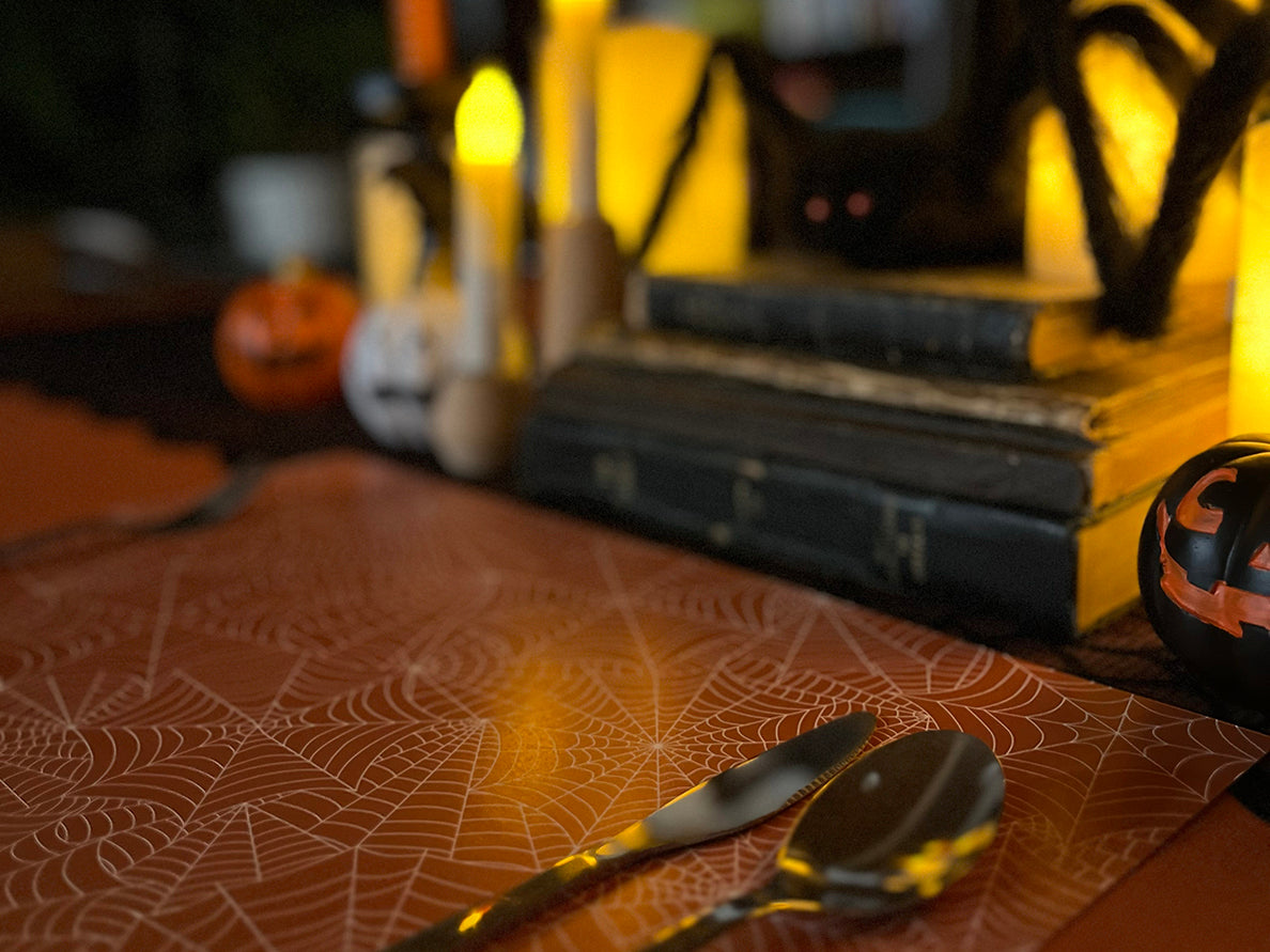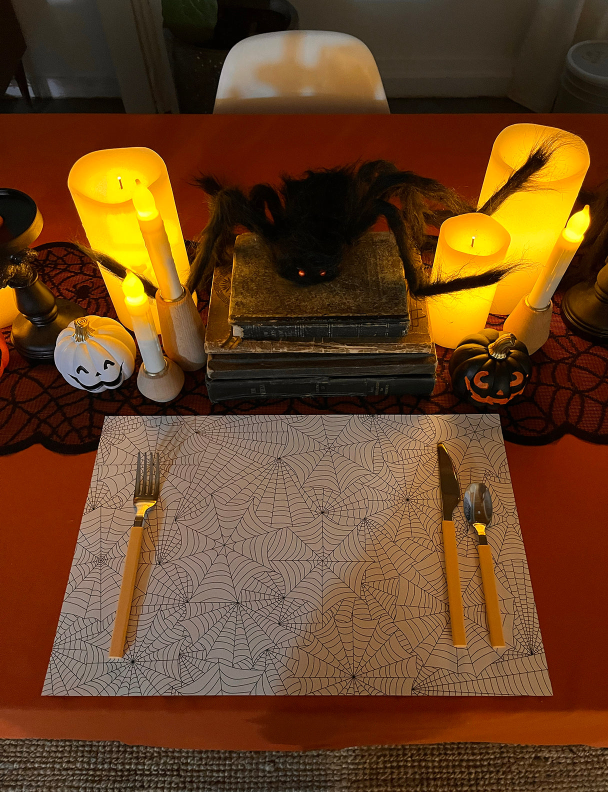 Set a spooky scene with our recyclable Halloween paper placemats featuring creepy spider webs! Perfect for parties, haunted gatherings, and festive celebrations, these eco-friendly placemats make cleanup easy while adding frightful fun to your holiday table.